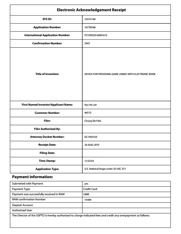 - Previous[USA/Technical] EDUTAINMENT SYSTEM FOR SUPPORTING LINKAGE OF ELECTRONIC BOOK AND GAME 19.06.04